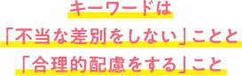改正障害者差別解消法(2024年4月1日施行)では、「不当な差別的取扱をしてはならない」ことと「合理的配慮の提供」をしなければならないことが行政機関および民間事業者に義務づけられています。