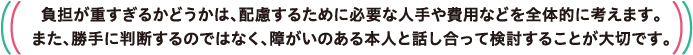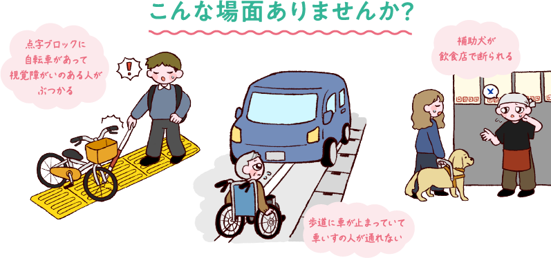 障がいのある人にサービスを提供するとき、障がいのある人から「手助けが必要です」と言われた場合、負担が重すぎない範囲で対応することです。