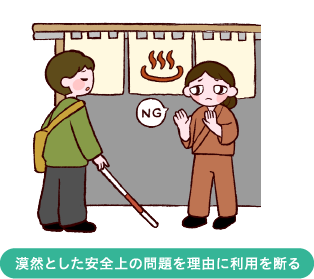 障がいがあるというだけで、正当な理由なく、サービスの提供を断ったり、条件を付けたりすることは、「不当な差別的取扱い」にあたります。